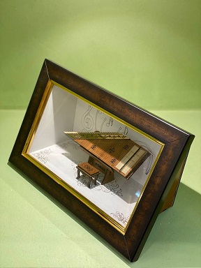این اثر در یک قاب چوبی شکیل با شیشه ی محافظ قرار گرفته و با دقت و ظرافت بالا طراحی شده است. نقش و نگارهای اطراف و پس زمینه موسیقایی، جلوه ای اصیل و هنری به آن داده اند.ماکت قانون،یادآور یکی از سازهای سنتی و کهن ایرانی است و می تواند انتخابی عالی برای علاقه مندان به موسیقی اصیل باشد.