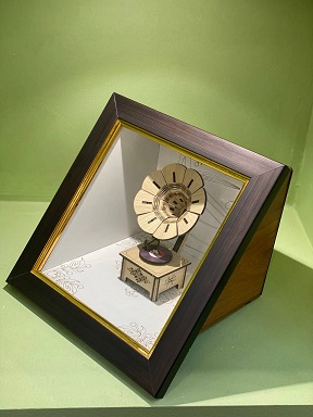 این تصویر یک قاب دکوری زیبا را نشان میدهد که درون آن ماکت ظریف گرامافون قرار دارد. طراحی کلاسیک و هنرمندانهی این اثر، حالوهوای نوستالژیک و اصالت موسیقی قدیمی را تداعی میکند. قاب چوبی با حاشیه طلایی در کنار ظرافت ماکت، این محصول را به یک انتخاب جذاب برای دکوراسیون منزل، هدیهای خاص و یا تکمیل کلکسیونهای هنری تبدیل کرده است.
